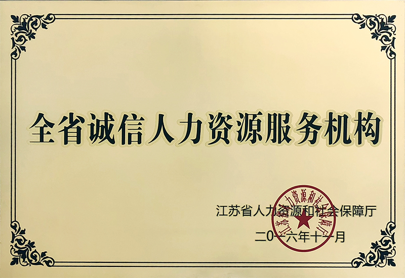 “江蘇省誠信人力資源服務(wù)機構(gòu)”、“江蘇省工人先鋒號”等多項榮譽稱號。